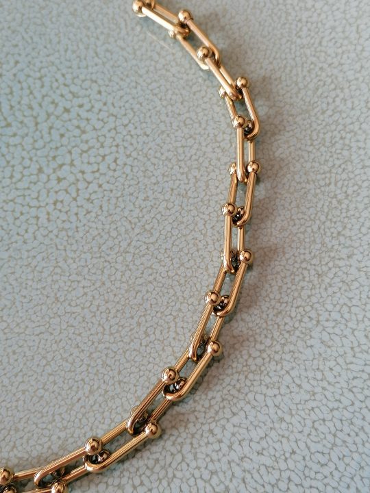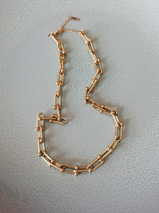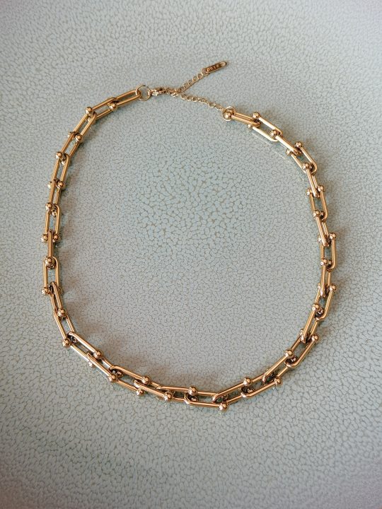 Choker dorada con eslabones alargados con bolitas. Incluye alargador. Suave al tacto, acabado impecable. Ligeramente robusta. Para lucirla sola.