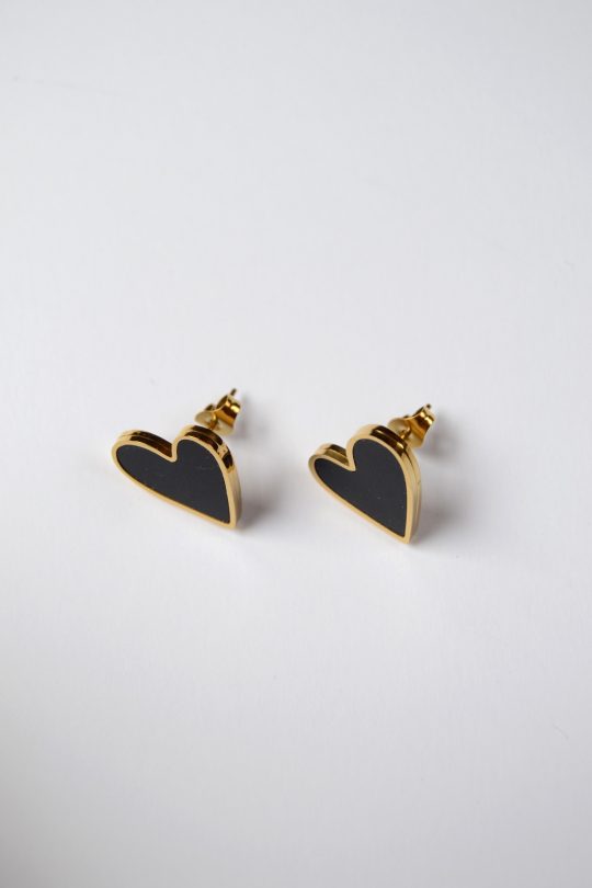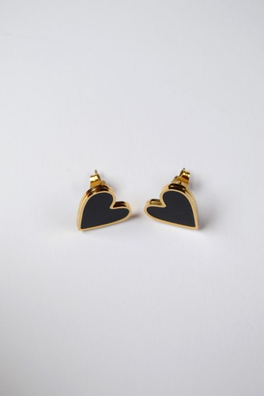 Pendientes corazón. Pendientes con forma de corazón lacado en negro. Ligeros y favorecedores.