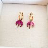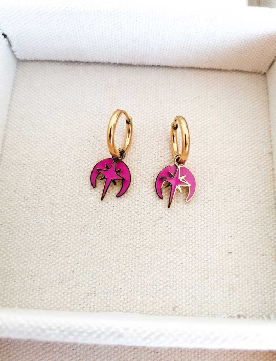 Pendientes de aro con charms de cuerno y estrella polar esmaltados en fucsia. Posibilidad de sacarlos y lucir solo uno. Muy ligeros y favorecedores.